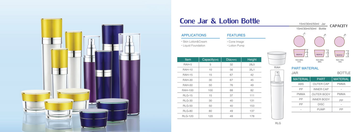 We manufacture and offer Airless Bottles and other Plastic Injection Lotion Bottles, Acrylic Jars, PETG Jars with single wall and double wall components